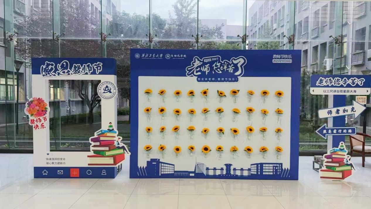 学院特定制“教师节”主题打卡拍照墙、献花献礼墙,旨在用光影定格师生美好瞬间,记录师生间温暖情意。这面饱含敬意与心意的墙面,是学院对全体教师默默耕耘、无私奉献的崇高礼赞。