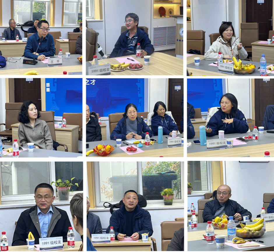 在校友交流发言环节,1991级校友们逐一回顾了在母校求学的青葱岁月,分享了各自毕业三十年后的奋斗历程与人生感想。大家深情告白母校及母院,并结合自身实际,围绕创新创业、职业发展规划、国防军工院所人员工作感悟等内容各抒己见、畅所欲言。座谈现场氛围热烈融洽,欢声笑语不断。