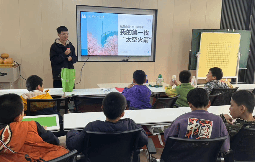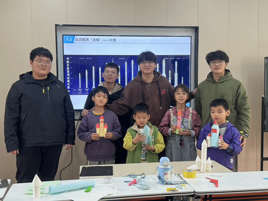 延续航天科普热情,赓续爱国主义教育情怀,我院志愿者龙睿骞、罗啸天、王佳杰、牛超文于近期再次走进社区,带来了以“三航科普课——我的第一枚太空火箭”为主题的又一堂科普课。本次课程以“科普讲解+趣味手工”为主要形式,通过生动的课堂讲授与互动体验,让小朋友们在轻松愉快的氛围中了解航天知识。
