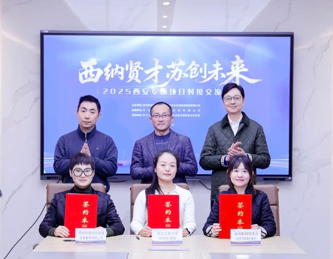 12月3日,6165cc金沙总站检测中心与苏州市姑苏区金阊新城举行产学研合作签约仪式。金阊新城(白洋湾街道)党工委书记邱炜、苏州历史文化名城发展集团副总裁褚梦江等负责人,我院党委书记孙华强、办公室主任魏爱玉、信息融合技术教育部重点实验室负责人员及关注产教融合的青年教师,以及苏州、西安两地优质创新创业项目代表等参会。