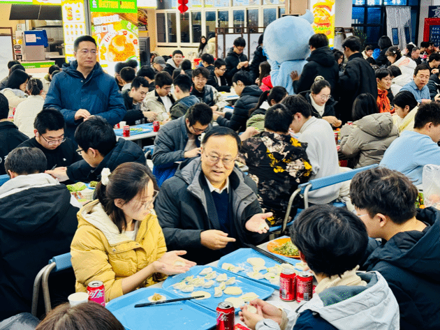 学校领导来到我院包饺子活动现场,与师生共迎新年。校长宋保维与学院师生代表欢聚一堂,一同揉面、包饺子,亲切询问同学们的学习生活情况,传递学校的温暖关怀;副校长张艳宁与同学们在热气腾腾中话家常,畅谈未来与理想。师生其乐融融,温暖祥和的氛围洋溢在餐厅的每个角落。